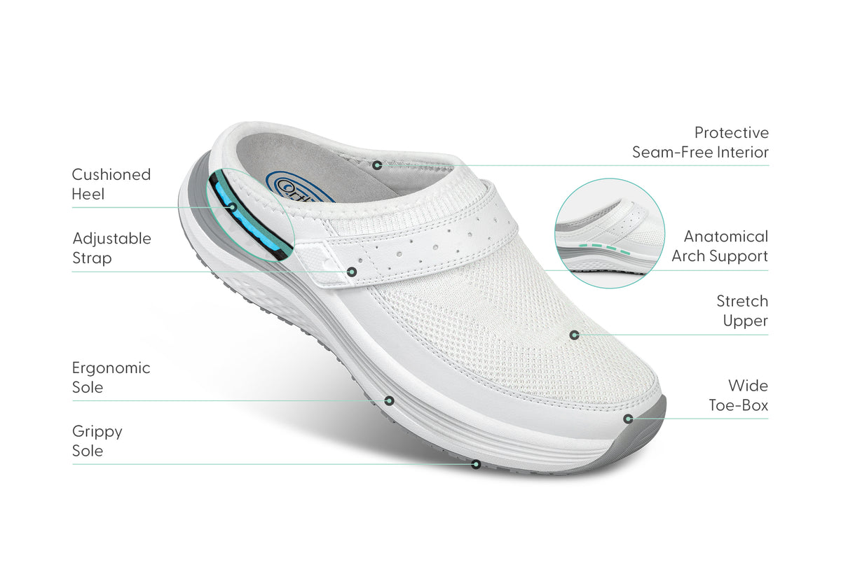 Confortul arcului - Canelurile capacului ridică ușor călcâiul pentru a proteja piciorul și se conformează arcului pentru a reduce presiunea.